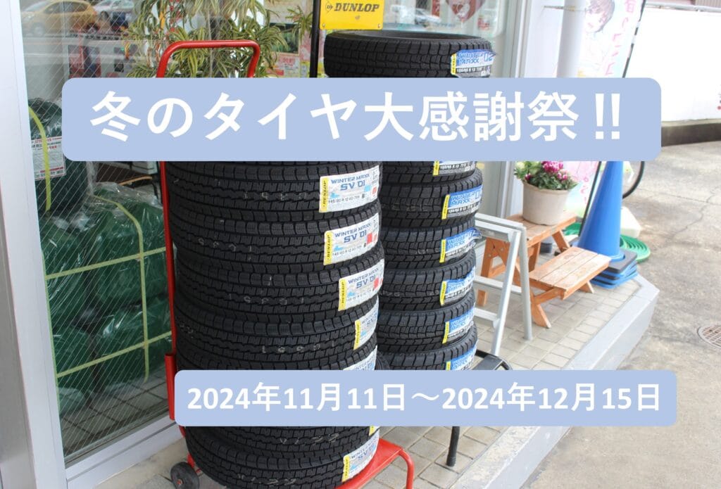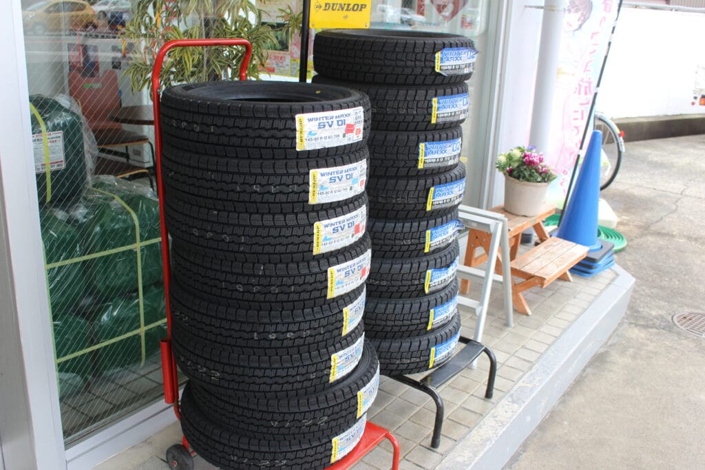 冬・春のタイヤ交換(タイヤ履き替え)に加え、古くなったタイヤを新しいものに変えるタイヤ組み換え、タイヤ販売、パンク修理、空気圧調整等、タイヤ関連のことならおまかせください。詳しくはこちら