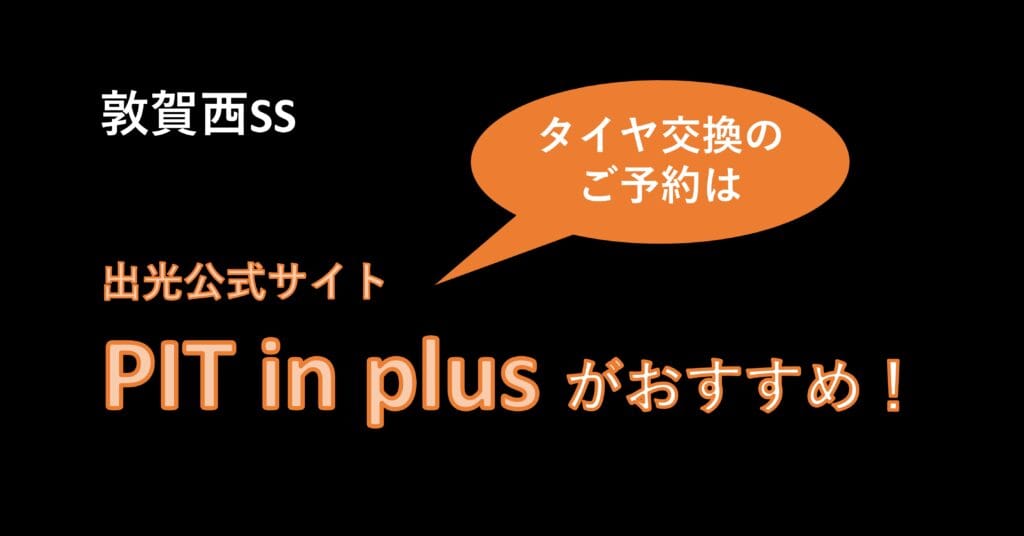 タイヤ交換のご予約は PIT in plus で!! 敦賀西SSではタイヤ交換は予約制となっております。昨年までは店頭もしくはお電話のみでの受付となっていましたが、今年からは出光公式サイトであるPIT in plus からも予約をすることができます。タイヤ交換の...